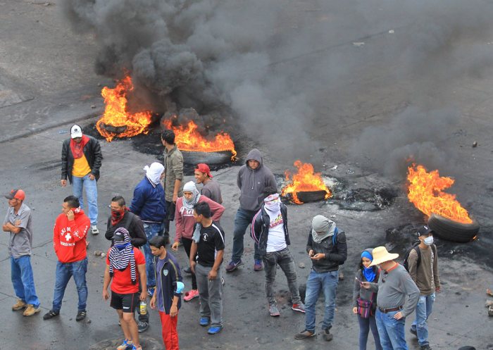 En Tegucigalpa, los manifestantes han bloqueado varias salidas obstaculizando la circulación con piedras, quema de neumáticos y basura, mientras piquetes de policías y militares intentan desalojarlos.