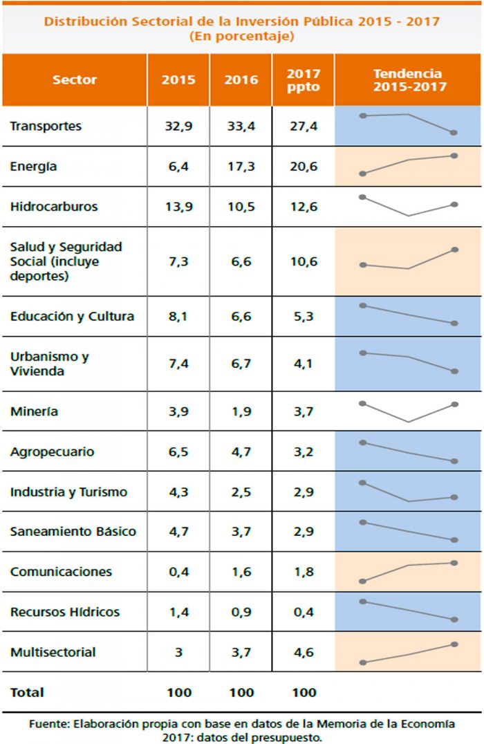 En tres años, comparando el dato ejecutado de 2014 en relación al presupuesto 2017, el ingreso de gobernaciones disminuyó en 55% por concepto de coparticipación de tributos, regalías e IDH.