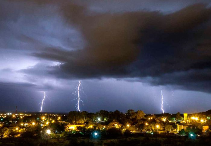 El SMN indicó que la zona noreste y noroeste argentina se verá afectado por el desplazamiento de un frente frío, y agregó que algunas de las tormentas provocarán “ráfagas intensas, fuerte actividad eléctrica, abundante caída de agua en cortos períodos y ocasional caída de granizo”.