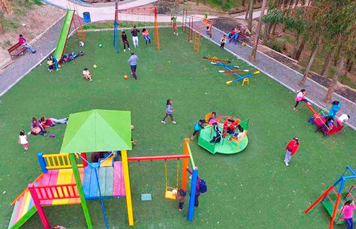 “Es una renovada plaza España porque hemos cambiado la estructura. Hemos colocado nuevos juegos infantiles, antes era un espacio común para jóvenes y niños. Ahora hemos separado los dos espacios para que sea un área específica de los jóvenes, un punto de encuentro donde cultiven el cuerpo y hagan deporte. Y en el espacio de los niños, hemos cerrado con una baranda para que simule una guardería, con piso amortiguante y una reja”, explicó Soliz.