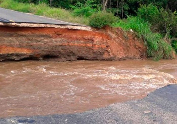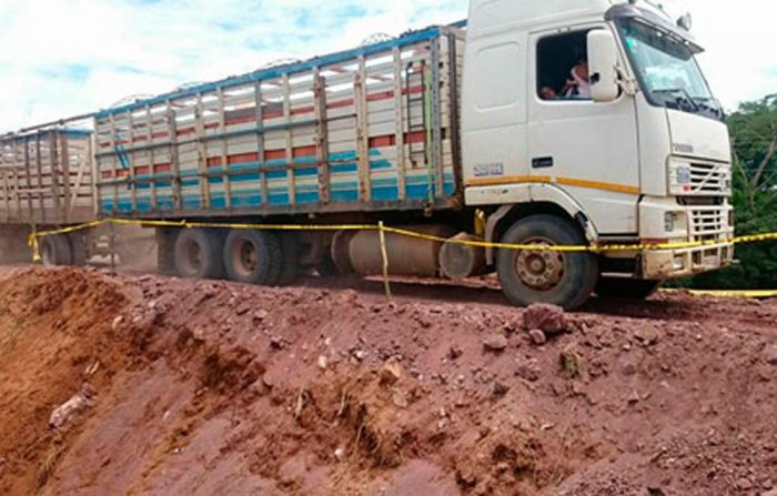 Dieciocho horas continuas de lluvia ocasionaron la crecida de un río y la caída de un terraplén en la carretera que une a la región de Santa Cruz con Beni, cerca de la comunidad Surucusi.