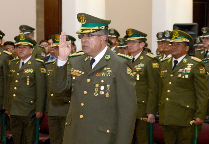 Autoridades y el flamante comandante general de la Policía Boliviana, general Faustino Mendoza, evitaron referirse a las denuncias en su contra, señalando que son temas personales y para su designación se tomó en cuenta todos los antecedentes documentados correspondientes.