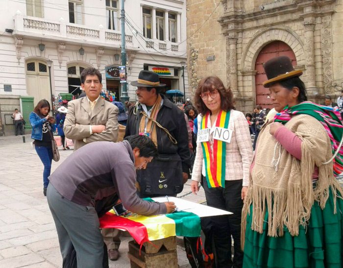 Distintos colectivos y agrupaciones ciudadanas se organizaron para la recolección de un millón de firmas de bolivianos que se adhieran a la denuncia contra el fallo del Tribunal Constitucional Plurinacional (TCP) que atenta el resultado del referéndum del 21 de febrero de 2016. Dicha denuncia llegará hasta la Organización de Estados Americanos (OEA) informó a EL DIARIO la activista Angélica Siles.