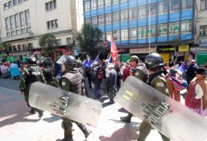 Los bloqueos y las movilizaciones que se hicieron en todas las zonas y barrios de la ciudad de La Paz fueron fraccionados por efectivos de la Policía, que recurrió al uso de agentes químicos para ahuyentar a los vecinos que se negaban dar paso a los vehículos.