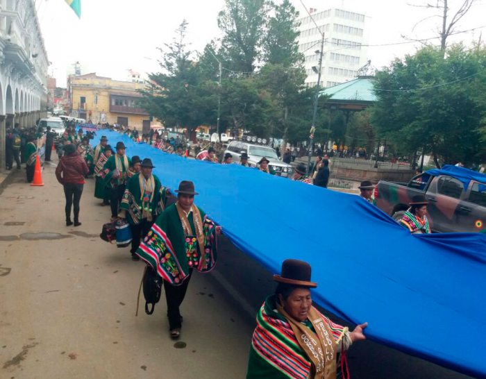 Morales instó a las organizaciones sociales y ciudadanos que participarán de esta actividad –denominada “banderazo” y que se desarrollará este 10 de marzo– a llevar la bandera con alegría y energía, especialmente cuando llegue el helicóptero, desde donde filmarán no solo la actividad, sino la extensión de la bandera.