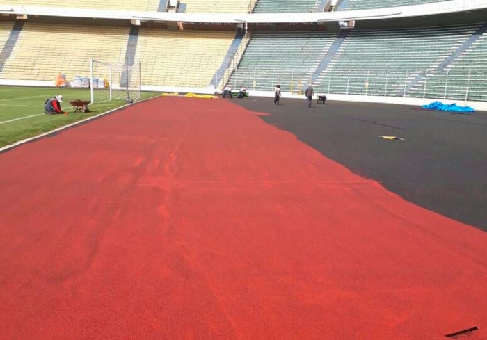 En febrero de este año los dirigentes de los dos clubes paceños de la Liga y Montaño se reunieron con el Gobernador Félix Patzi para hablar del tema, pero quedó en nada, ya que semanas después Patzi solicitaba un informe técnico del proyecto y como no le llegó se procedió al colocado del material sintético. ción de la pista atlética”.