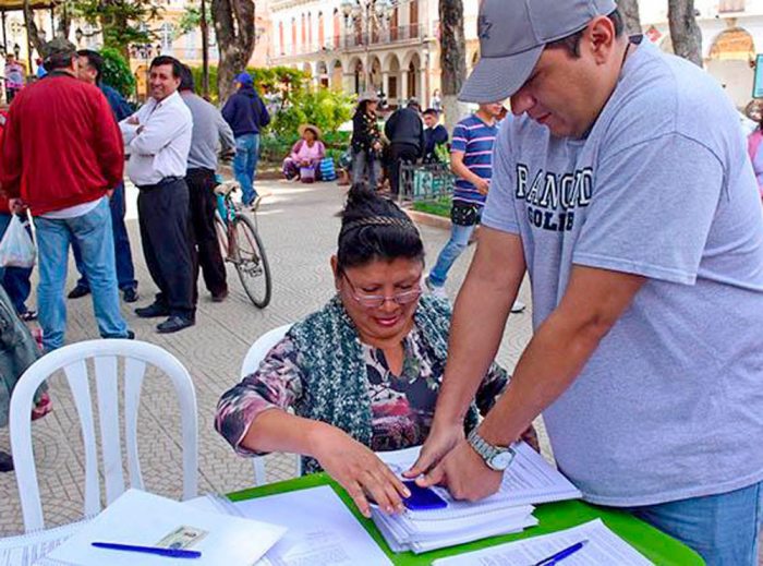 “Hemos logrado 1.150 firmas y huellas dactilares para entregar al Tribunal Electoral, el que nos va servir para revocar a la alcaldesa del municipio de Poopó, son libros notariados, tanto para iniciar como ahora, que ya hemos terminado”, informó Florencio Uscamaita, presidente del Control Social.