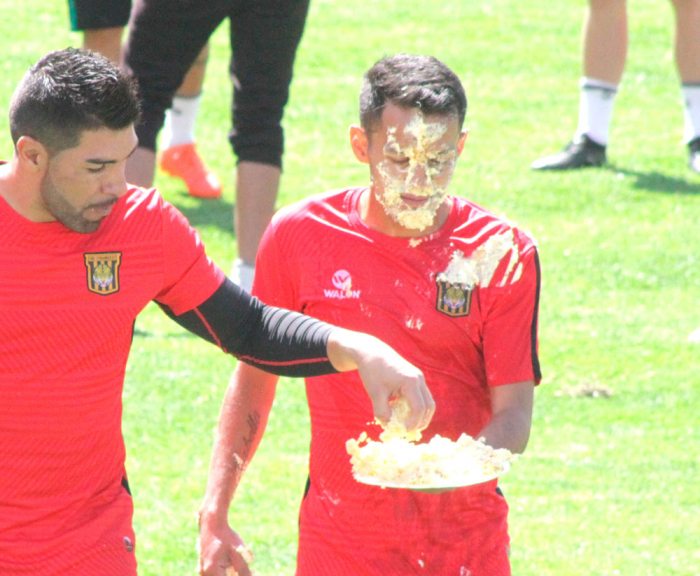 El mediocampista atigrado Jhasmani Campos quiere regalarse el título del torneo Apertura. Ayer, cumplió 30 años y lo celebró con sus compañeros en pleno entrenamiento. Henry Vaca le acercó una torta y le acercó con fuerza a su cara, Campos tuvo que retirarse a limpiarse el rostro. “Uno de mis deseos, es poder conseguir el titulo (del torneo Apertura), queremos regalarle eso a la gente (atigrada) porque nos estamos matando todos los días para lograrlo”, dijo Campos, al salir del entrenamiento.