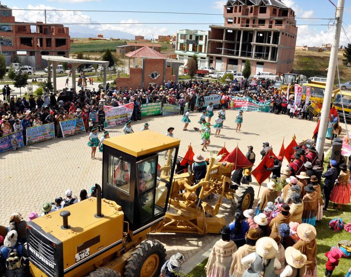 La alcaldesa de El Alto, Soledad Chapetón, entregó maquinaria pesada, con la que se impulsará trabajos de mejoramiento en el Distrito 10.