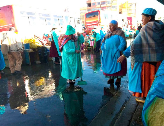 En un trabajo coordinado entre la Dirección Integral de Residuos y la Asociación de Comerciantes Minoristas 10 de Agosto de la Ceja, se realizó la limpieza y fumigado de los puestos de venta de la avenida Tiwanaku.