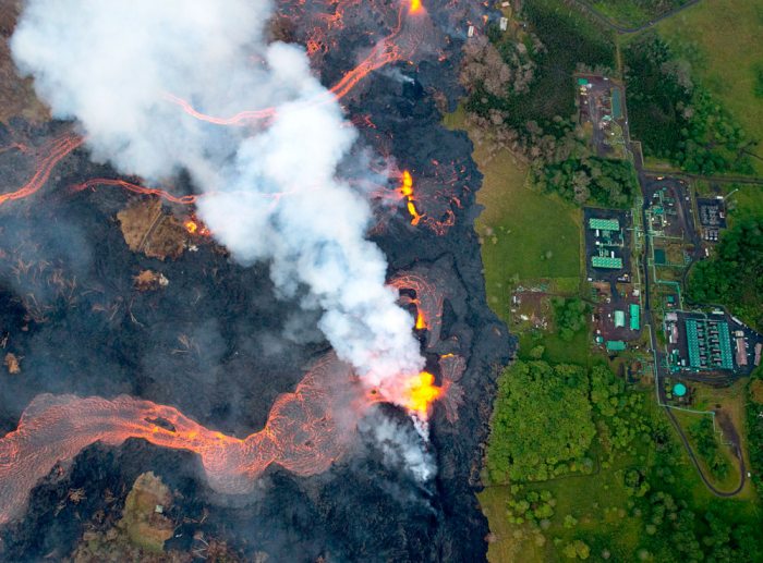 El volcán Kilauea de Hawái entró otra vez en erupción en las últimas horas, después de tres semanas de la primera explosión, amenazando ahora una planta geotérmica que suministra el 25% de la energía de la isla.