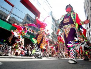 Una de las danzas que predominó fue la morenada, en la que tanto mujeres como hombres bailan a un paso cansino junto a otros personajes. Los denominados “morenos” llevan máscaras, pesados y costosos trajes.