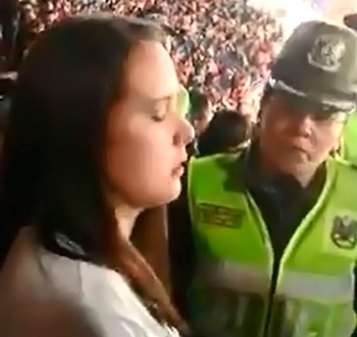 Los videos también muestran la protesta de varias personas, quienes increparon a los policías de “abusivos”, debido a la exigencia de hacer desaparecer dicho mensaje de la vestimenta, y de no hacer caso a esta orden la desalojarían del escenario deportivo. Finalmente, la obligaron a cubrir la polera con otra prenda