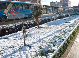 Calles y jardineras mostraron un mato blanco que al pasar de las horas se derretía para formar chacos de agua que mantenían el hielo.