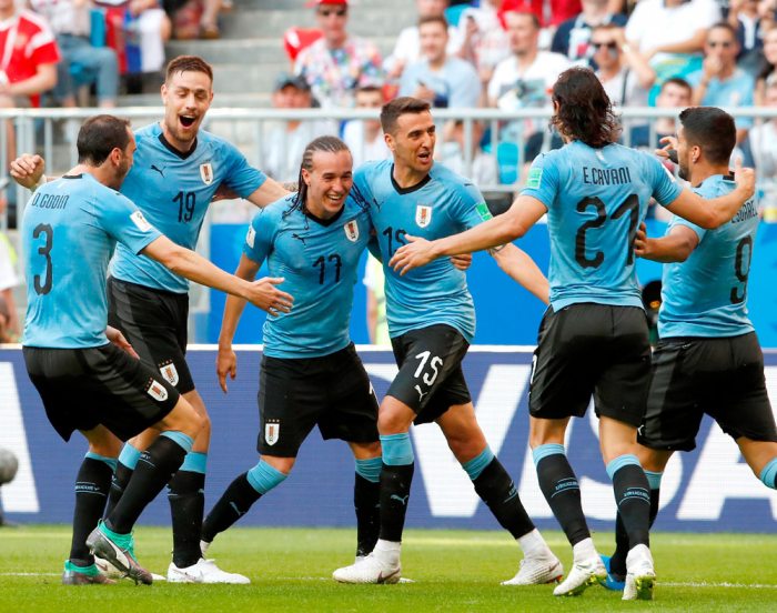 Uruguay terminó la primera fase con pleno de victorias tras ganar a Egipto (0-1), a Arabia Saudí (1-0) y a Rusia (3-0). Acabó en el liderato del grupo A y podría enfrentarse en octavos de final a España, a Portugal o a Irán. Cualquier de sus tres rivales tendrá tiempo para analizar al conjunto charrúa, que acumuló algún récord y varios datos personales a lo largo de los primeros 270 minutos que ha disputado en Rusia: Uruguay nunca había ganado sus tres partidos de la fase de grupos; El portero de Uruguay sumó ante Rusia su partido número 14 en un Mundial y superó los 13 que acumuló el mítico guardameta Ladislao Mazurkiewicz entre las Copas del Mundo de Inglaterra 1966, México 1970 y Alemania 1974; el meta uruguay mantiene su arco invicto en los tres partidos del Mundial.