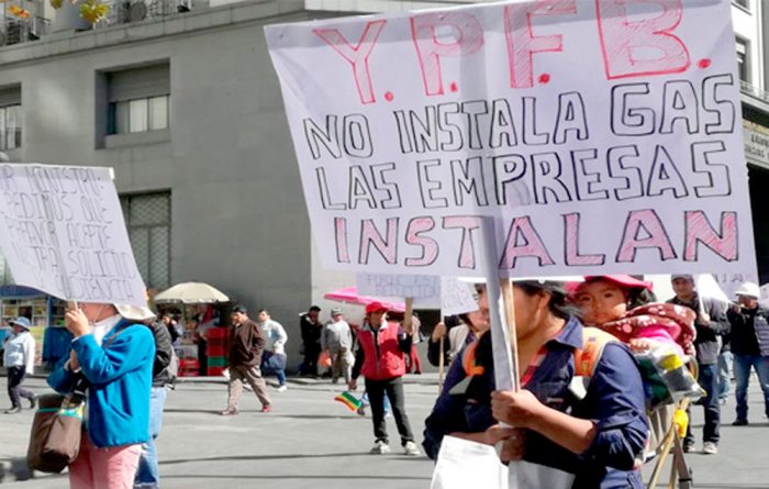 La Asociación de Empresas Instaladoras de Gas (Asegas) volvió este martes a las calles en protesta por la reducción de los planes de conexión de gas domiciliario y denunció actos de represalia de parte de algunos ejecutivos de YPFB por haber denunciado corrupción en la administración de ese proyecto.