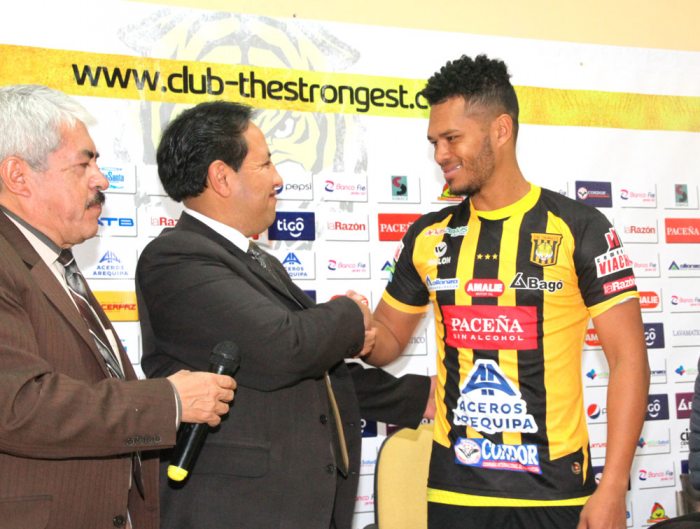 El presidente del decano, Henry Salinas, presentó ayer al delantero panameño Rolando Blackburn, quien elogió a la entidad de Achumani.