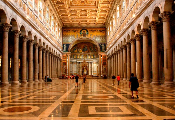 La imponente basílica, una de las cuatro papales y propiedad extraterritorial del Vaticano, comenzó a construirse donde se cree que fue sepultado el apóstol San Pablo, después de que el emperador Constantino promulgara el fin de la persecución cristiana en el 313.