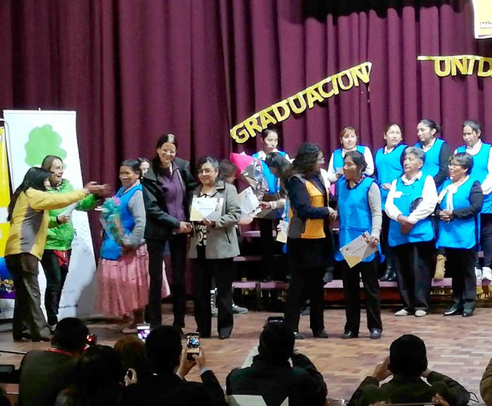 En un acto especial que reunió a varias familias en el Teatro San Gabriel, 761 mujeres se graduaron después de la capacitación sostenida durante el primer semestre de esta gestión, gracias a la Unidad de la Mujer y la Fundación Pueblo.