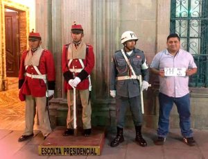 Un ciudadano boliviano no necesitó ser parte de los colectivos ciudadanos para expresar su rechazo a la repostulación del presidente Evo Morales. ¿Qué hizo? Se paró junto a la Escolta Presidencial en las puertas de...