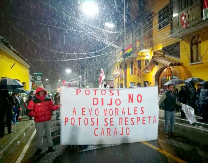 “Vamos a Potosí para revindicar la democracia porque el Gobierno con el desconocimiento del referéndum de 2016, quieren borrar de un plumazo el voto de los bolivianos, hay tranquilidad en las plataformas del 21F, pero hemos escuchado que nos van a esperar con puntazos y chutazos”, indicó Beto Astorga de Otra Izquierda es Posible (OIP).