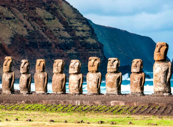 Existen en la isla casi mil de estas esculturas, conocidas como moáis, que representan importantes antepasados y que puede llegar a medir hasta 21 metros de altura.