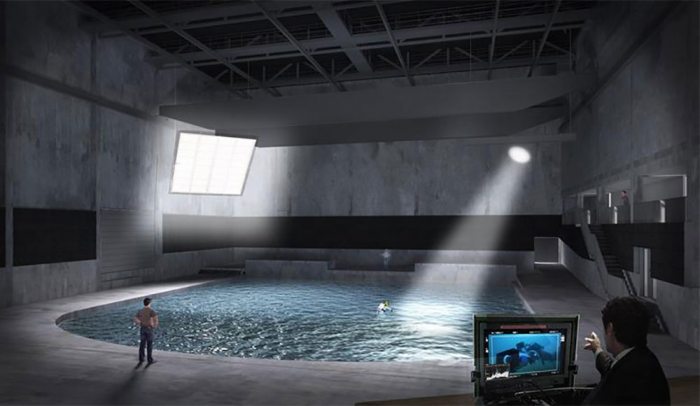 El proyecto tendrá tres estudios, dos de ellos pensados para rodar escenas acuáticas, de 1.200 y 1.700 metros cuadrados; el más ambicioso tiene una fosa de nueve metros de profundidad con capacidad para “seis millones de litros de agua climatizada”, explica.