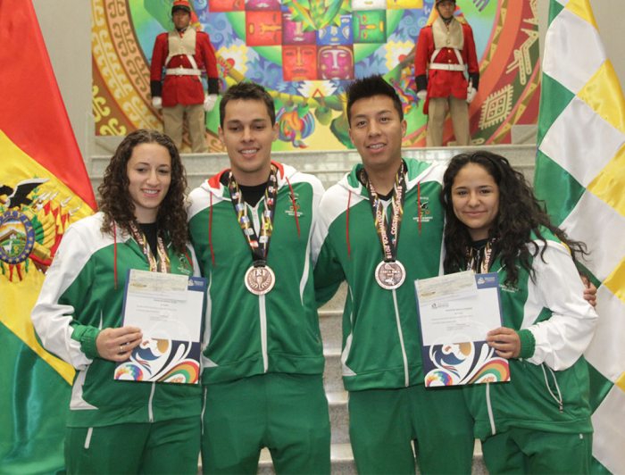 Yazmine Sabja, Valeria Centellas (oro en el Mundial Open), Conrrado Moscoso y Roland Keller (bronce) recibieron la mañana de ayer la suma de 5.000 y 2.000 dólares respectivamente por las preseas que obtuvieron a mediados de este mes en San José, Costa Rica.