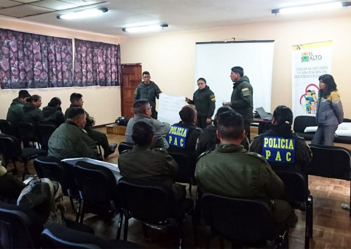 Personal policial de la Fuerza Especial de Lucha Contra la Violencia (Felcv) de El Alto fue capacitado en el “Consumo perjudicial de bebidas alcohólicas”.