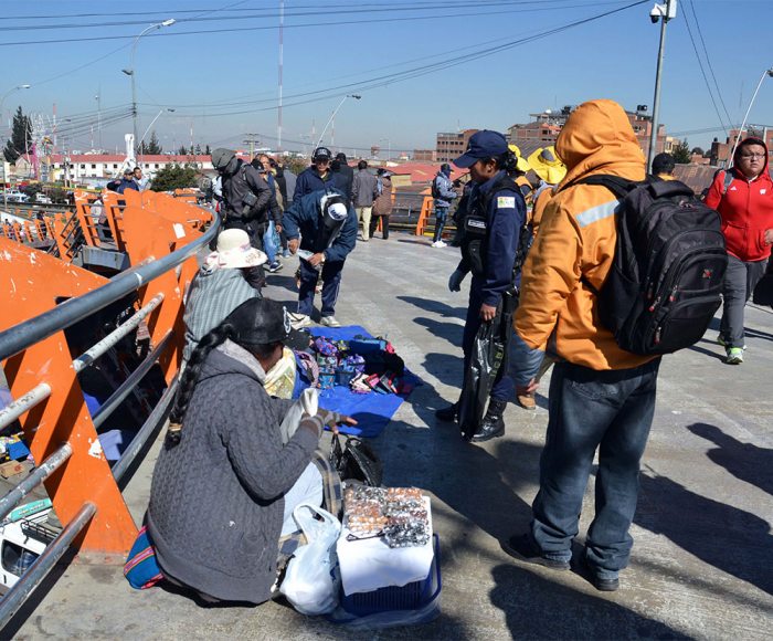 El intendente Municipal de la Alcaldía de El Alto, capitán Ruddy Saavedra, manifestó que en los próximos días, instalarán puestos de vigilancia permanentes en la Pasarela del Arquitecto de La Ceja.