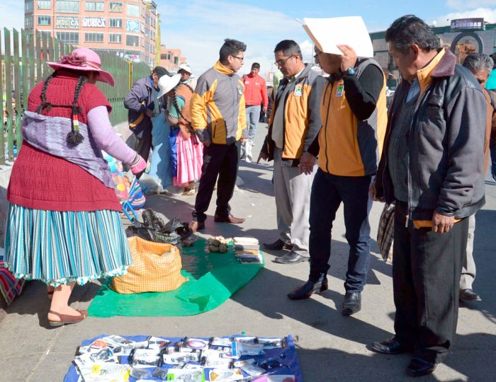 “Para este cometido se ha coordinado con la Secretaría Muncipal de Movilidad Urbana Sostenible (SMMUS), Intendencia, Secretaría Municipal de Desarrollo Económico (SMDE) y la Policía de El Alto. Cabe informar que también se tiene planificado intervenir las avenidas 6 de Marzo y Tiahuanaco, además de las calles Jorge Carrasco y la Raúl Salmón”, informó el coordinador de la Secretaría Municipal de Desarrollo Económico, Raúl Garay.