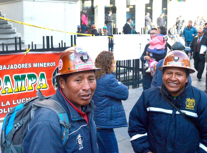 Los trabajadores mineros de Amayapampa llegaron hasta la sede de Gobierno para marchar y exigir al Gobierno cumpla su compromiso de reactivar la explotación del yacimiento de oro además de las demandas laborales.