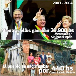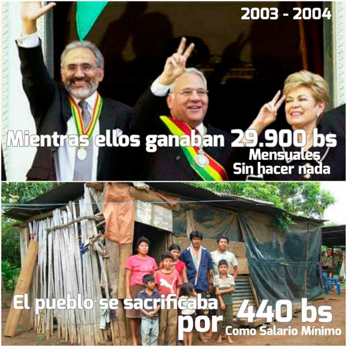 En la página de “Firmes con Evo” existen publicaciones en el marco de la guerra sucia donde muestran las presuntas irregularidades que se generó en el gobierno de Carlos Mesa (2003-2005). Por ejemplo, en una imagen muestran los sueldos de los presidentes y vicepresidentes que sobre pasaban los 30.000 bolivianos.