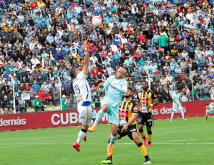 El clásico comenzó con dominio celeste que ganó el mediocampo y elaboró opciones de gol gracias a los movimientos de Erwin Saavedra y Enrique Flores.