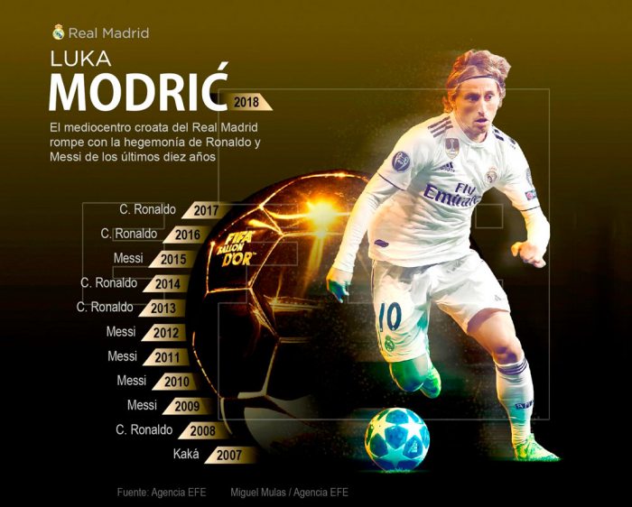 En 2018, el futbolista croata de 33 años ha coronado su carrera con los mayores premios en el mundo del fútbol, durante años acaparados por Cristiano Ronaldo y Leo Messi.