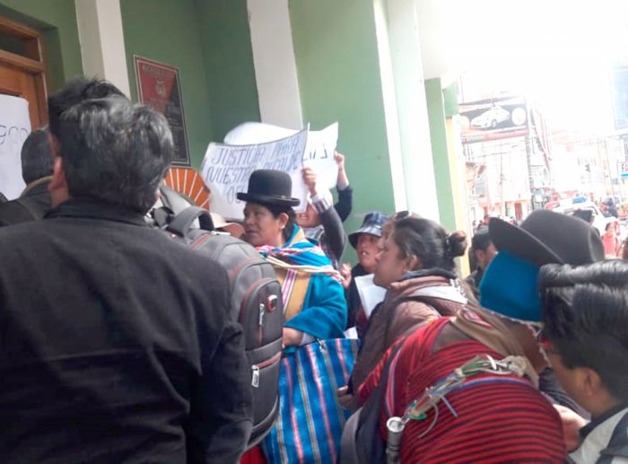 Luego de cuatro horas de haber solicitado la detención de Waldo Echeverría, en las puertas de la Felcc pobladores de Viacha, juntas vecinales y comunarios aguardaban resultados.