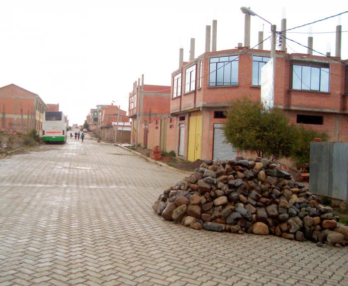 “Es una lástima que no podamos retomar la continuidad en la construcción de nuestra sede, porque está mal construida, por eso debemos iniciar nuevamente para lo cual en el momento no contamos con un presupuesto que pueda posibilitar su ejecución, por lo que nuestras reuniones de vecinos las hacemos de forma improvisada en otros lugares”, aseveró el presidente de este barrio, Ángel Mamani.