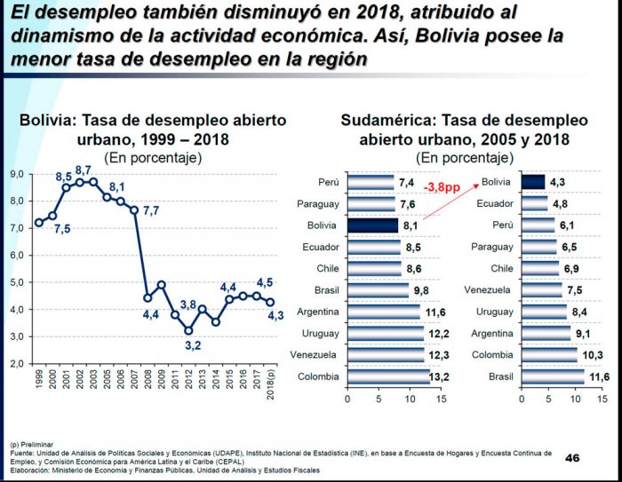 Por su parte, el economista y docente de la Universidad Técnica de Oruro (UTO), Ernesto Bernal, dijo que la condición laboral de Bolivia es resultado de nuestro desarrollo económico y social, una economía extractivista, ya que vivimos de nuestros recursos naturales.