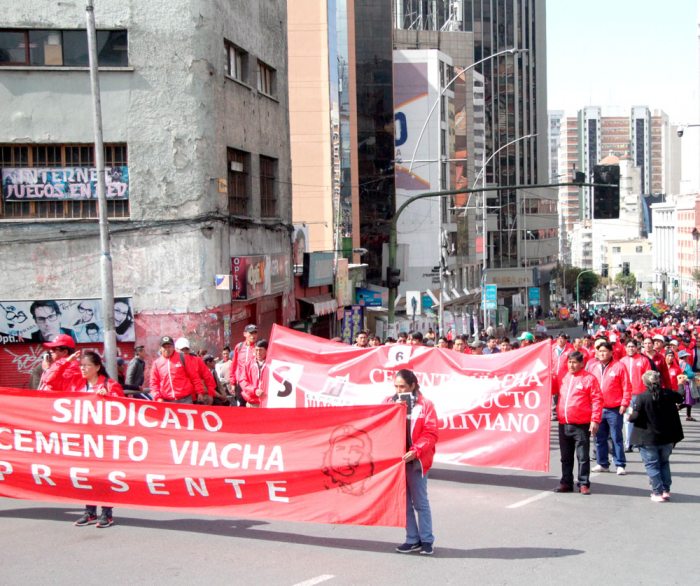 Desde muy temprano miles de trabajadores fabriles de las ciudades de La Paz y El Alto, se concentraron en el denominado puente de la Cervecería Boliviana, para luego iniciar la marcha conmemorando el 1 de Mayo, “Día del Trabajo,” que recorrió el centro paceño y culminó con un mitin en la plaza de San Francisco.