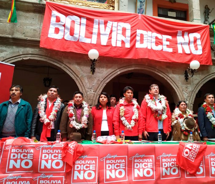 También están en intensa campaña electoral el Movimiento Tercer Sistema (MTS) con su candidato Felix Patzi, gobernador del departamento de La Paz; Carlos Mesa, candidato de la alianza Comunidad Ciudadana (CC); Oscar Ortiz, candidato de la alianza de “Bolivia dice No”, y Víctor Hugo Cárdenas candidato de Unidad Cívica Solidaridad (UCS).