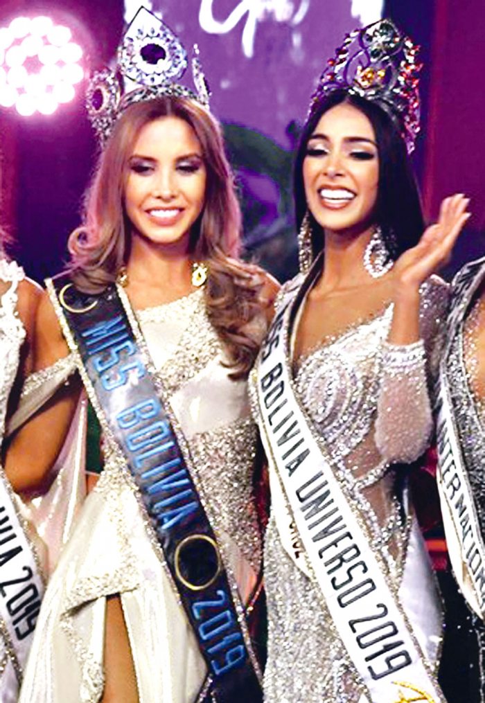 En la imagen Miss Bolivia (Mundo) Iciar Díaz Camacho (Srta. Santa Cruz) y Miss Bolivia (Universo) Fabiana Hurtado Tarrazona (Miss Santa Cruz).