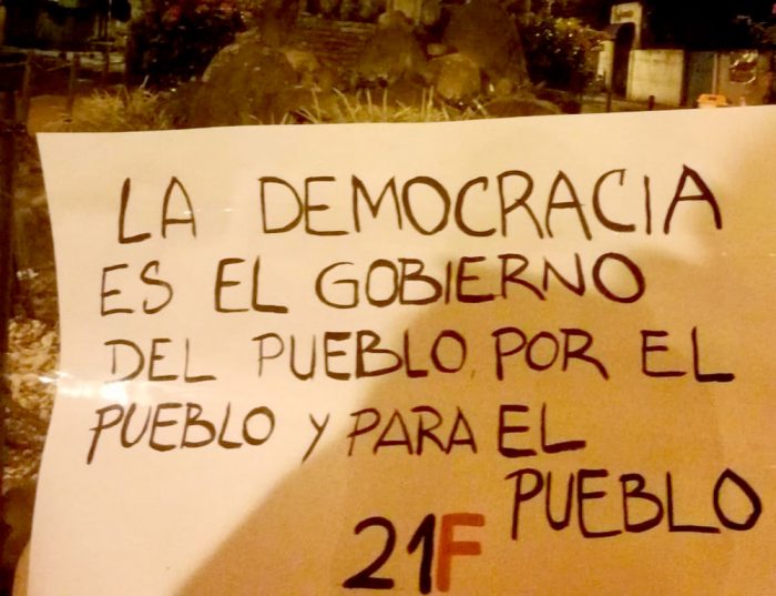 Con mensajes de: “Las madres ya no lloran, ahora luchan 21F”; “La democracia es el gobierno del pueblo, por el pueblo y para el pueblo 21F”; “Quienes solo tiene espiraciones individuales, jamás entenderán una lucha colectiva”.