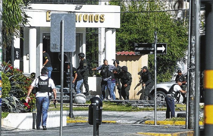 Este violento episodio duró aproximadamente 40 minutos, fue grabado por las cámaras de varios celulares, cuyos videos fueron ampliamente viralizados en las redes sociales los cuales muestran como los asaltantes toman de rehenes a los funcionarios de la empresa y los usan de escudos humanos para garantizar su huida, lo cual no les sirvió en absoluto, pues la policía arremetió contra estos, sin que le importe garantizar la vida de las víctimas y se confirmó que quitaron la vida a la administradora de la joyería Ana Lorena Tórrez.