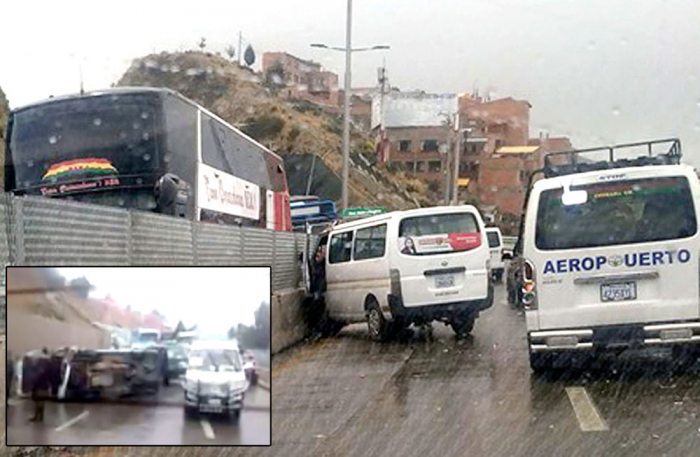 El director de tránsito de La Paz, Abel Claros, informó que a raíz del primer hecho de tránsito que fue en el carril de subida de la autopista, un vehículo, al parecer oficial, se paró en el carril de bajada para tratar de auxiliar, empero el minibús que venía detrás no pudo frenar, por lo que se produjo una segunda colisión.