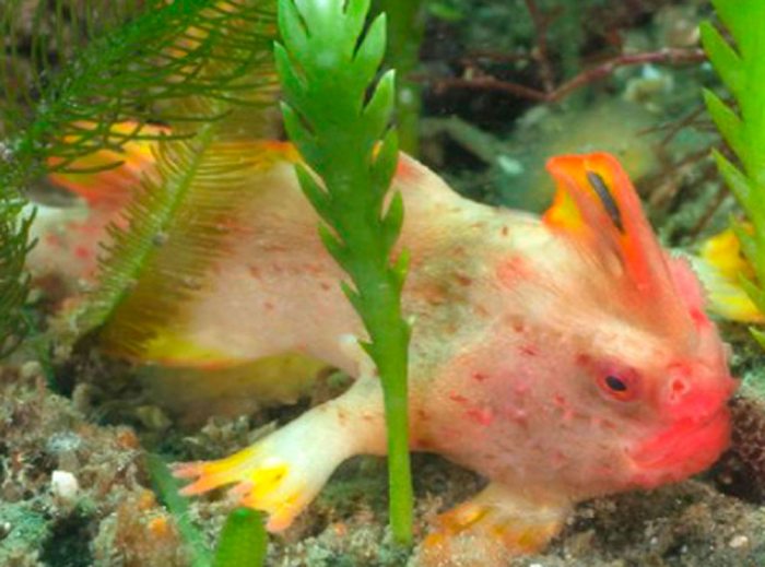El pez-mano rojo o pez moteado (Brachionichthys politus), que recibe este nombre por desplazarse apoyándose de sus aletas pectorales y ventrales, es uno de los peces más raros del planeta y su población está "críticamente amenazada".