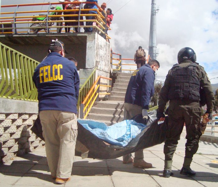 La instancia de investigación que diariamente es convocada por la población a objeto de realizar el levantamiento legal de cadáver, sus investigadores, no solo corren el riesgo de contaminarse con posibles enfermedades de la personas fallecida, sino que deben recorrer con el cadáver desde el lugar del levantamiento a las oficinas de la Felcc, para luego trasladarse hasta la fiscalía, solicitar que esta instancia autorice la autopsia y una vez obtenido el requerimiento trasladarse con el cadáver al interior de una camioneta tapada con una frazada, hasta ser trasladado al Hospital de Clínicas en la ciudad de La Paz. “Este procedimiento nos dificulta porque en el proceso de trasladar el cuerpo, incluso la gente trata de oponerse al traslado, buscan quitarnos el cadáver, aspecto que ocasiona la contaminación del cuerpo que a la larga perjudicará el proceso de investigación”, explicó uno de los investigadores.