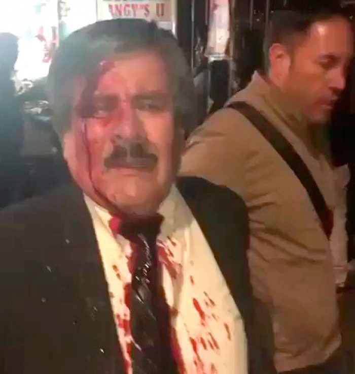 La tensión se incrementó, entre gritos de fraude, se arrojaban botellas y otros objetos que se confundían con las bombas de los gases lacrimógenos momentos en que el exdefensor del Pueblo, rector de la UMSA y miembro del Conade, Waldo Albarracín, resultó herido en la cabeza
