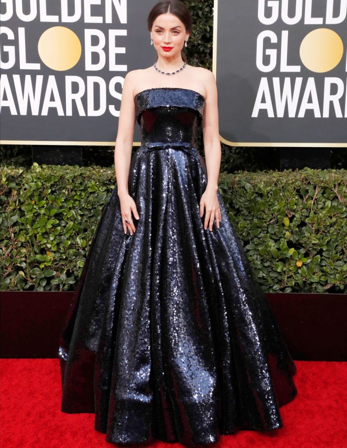 1. Ana de Armas, considerada la nueva estrella del cine y también de las alfombras rojas. La cubana de nacimiento y española de adopción, deslumbró con un sofísticado vestido de lentejuelas azul de la casa inglesa Ralph and Russo. La nominación a los Globos de Oro, por Puñales en la espalda, es solo uno de sus éxitos. Será chica Bond y será Marilyn Monroe, y además rodará con Ben Affleck y con Penélope Cruz.