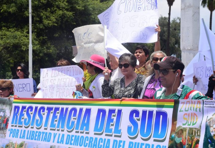 Durante el fin de semana los activistas de las plataformas, Mujeres por Bolivia y Únete, agrupadas en la Resistencia del Sud, se movilizaron en la ciudad de Cochabamba, en rechazo al proyecto de ley Cumplimiento de Derechos Humanos que fue sancionado por la cámara de Senadores.