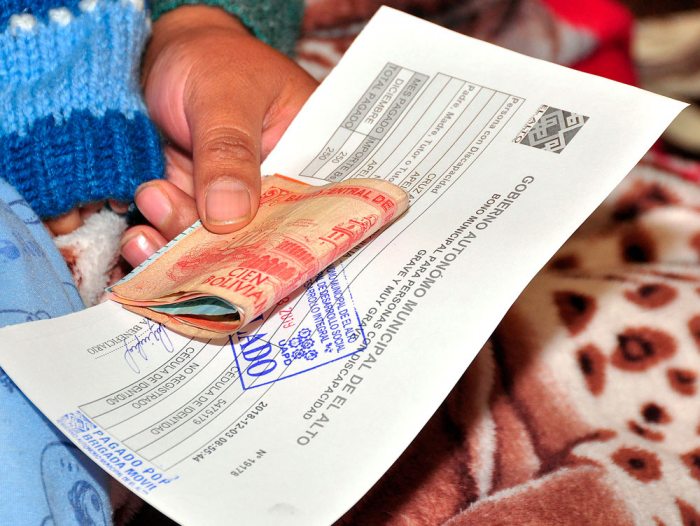 “Recordar que el Municipio está cancelando bajo dos modalidades, tenemos el punto fijo en nuestras oficinas que están en el Distrito 1, en Satélite, entre la avenida Cívica y la avenida del Policía, la otra es la brigada móvil que llega a través de dos furgonetas a los domicilios”, manifestó la directora de Desarrollo Integral, Eugenia Colque.
